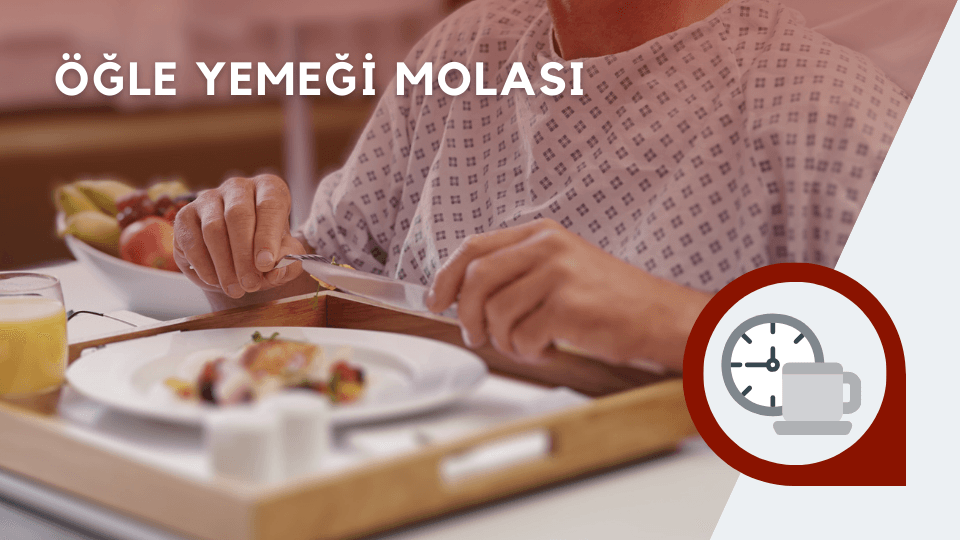 Bu noktada, rahatlamanız ve yemeğinizi keyifle yemeniz için bir öğle arası veriyoruz. Ne yemek istediğinizi size sorup siparişinizi veriyoruz. Bu mola sırasında başka bir odaya geçerek yemeğinizi özel olarak yiyebilirsiniz. İsterseniz, bu zamanı telefonla aileniz veya arkadaşlarınızla konuşarak da değerlendirebilirsiniz.